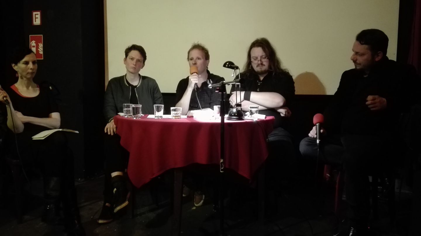 „Widerstand“ lautete die Devise des Abends. Eine Form des Widerstands, so Verleger Jo Frank, sei das Feiern. Feiern ließ sich die „qualitative Verbesserung der Welt“ in den Gedichten von Anna Hetzer, Mikael Vogel und Martin Piekar. Vogel präsentierte „Denkräume für ausgestorbene Tiere“. Er leistet Widerstand gegen das Vergessen verschwundener Arten in seinem lyrischen Anti-Bestiarium „Dodos auf der Flucht“.