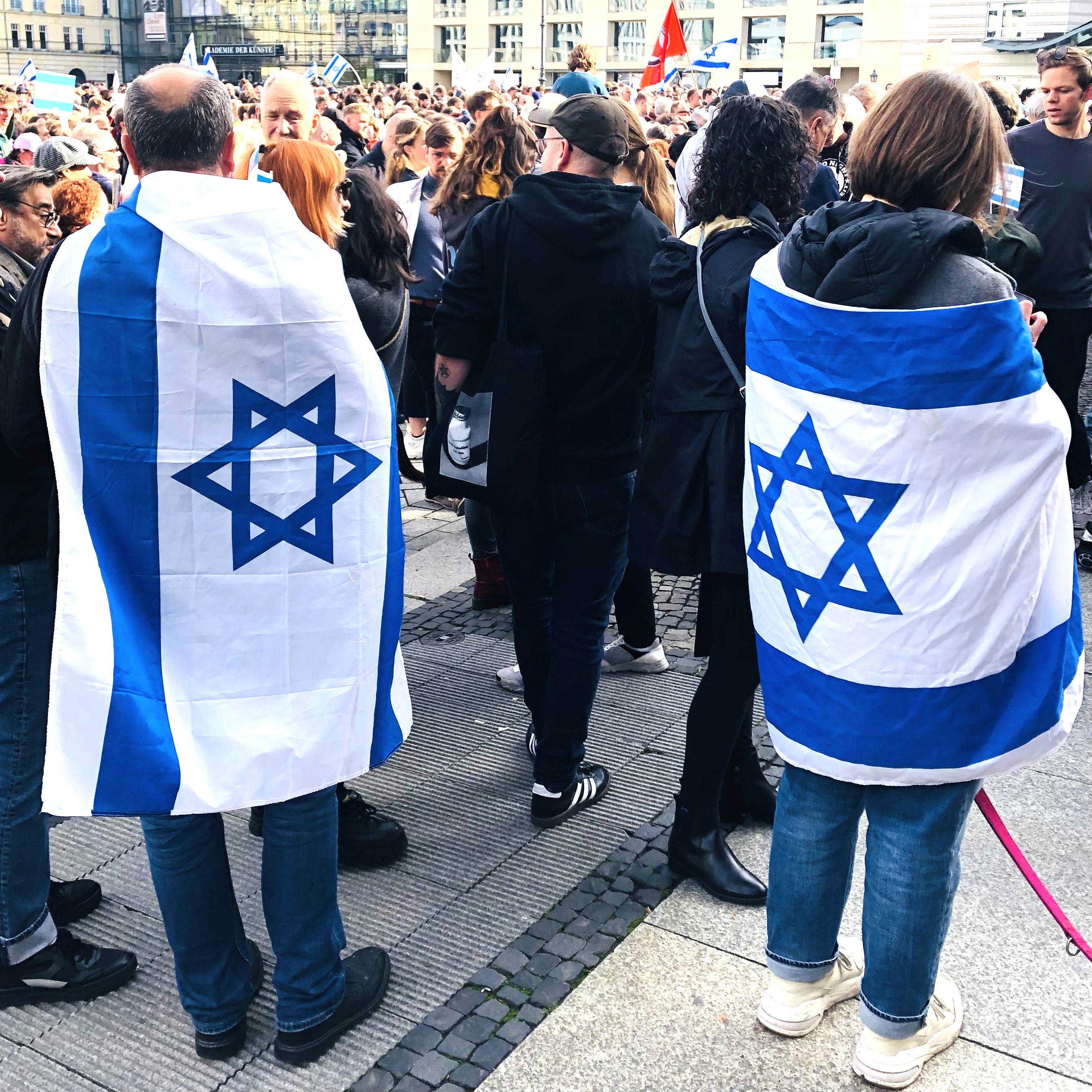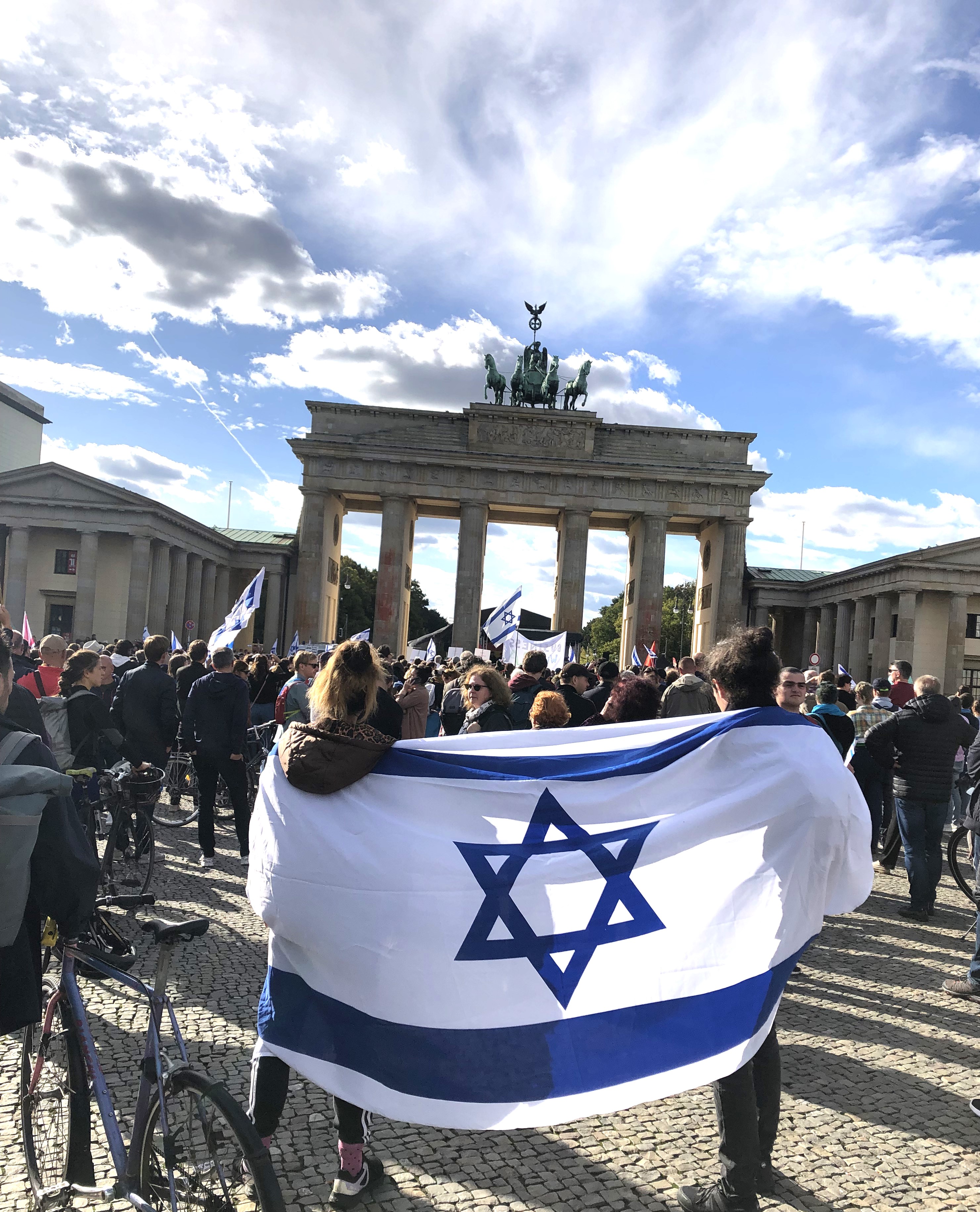 Die Aufnahmen entstanden am 8. Oktober 2023 während der Solidarität-mit-Israel-Demonstration am Brandenburger Tor. Die Demonstrierenden gedachten der jüngsten Opfer des Hamas-Terrors. Nach offiziellen Angaben nahmen ca. 2000 Personen teil. Es gibt besser besuchte Gartenfeste. Initiatorinnen waren u.a. die Deutsch-Israelische Gesellschaft (DIG) und die Jüdische Studierendenunion. Der israelische Botschafter Ron Prosor verkündete: „Jetzt, in diesem Moment, bekommt das Wort Staatsräson eine konkrete Bedeutung.“